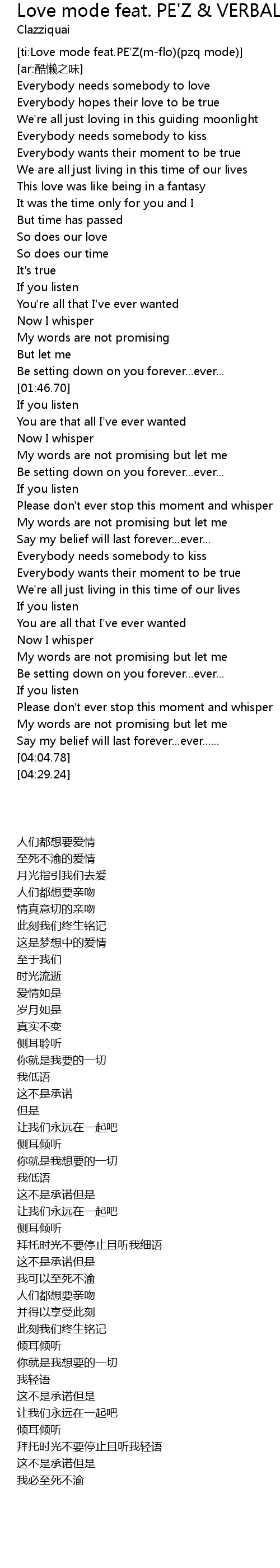 | [ti:Love mode feat.PE'Z(m-flo)(pzq mode)] | |