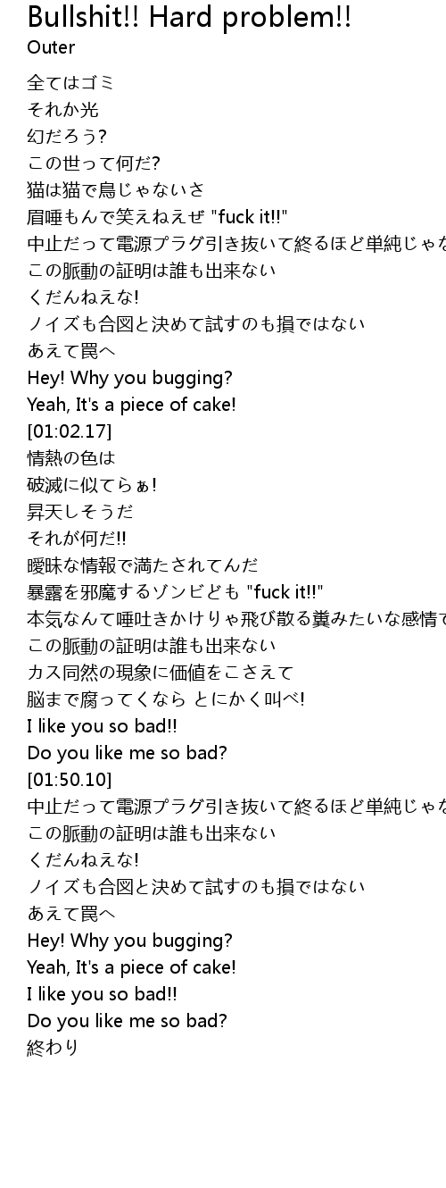 | [01:22.62] | bao lu xie mo " fuck it!!" |