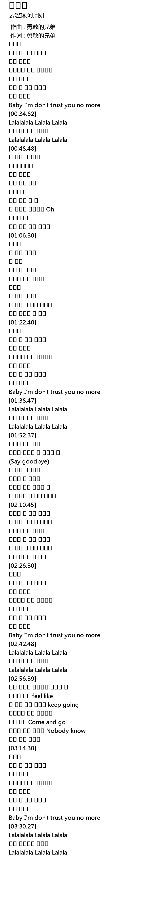 | [01:35.42] | Baby I' m don' t trust you no more |