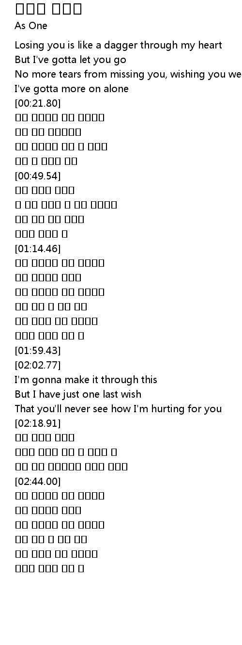 | [00:01.97] | Losing you is like a dagger through my heart |