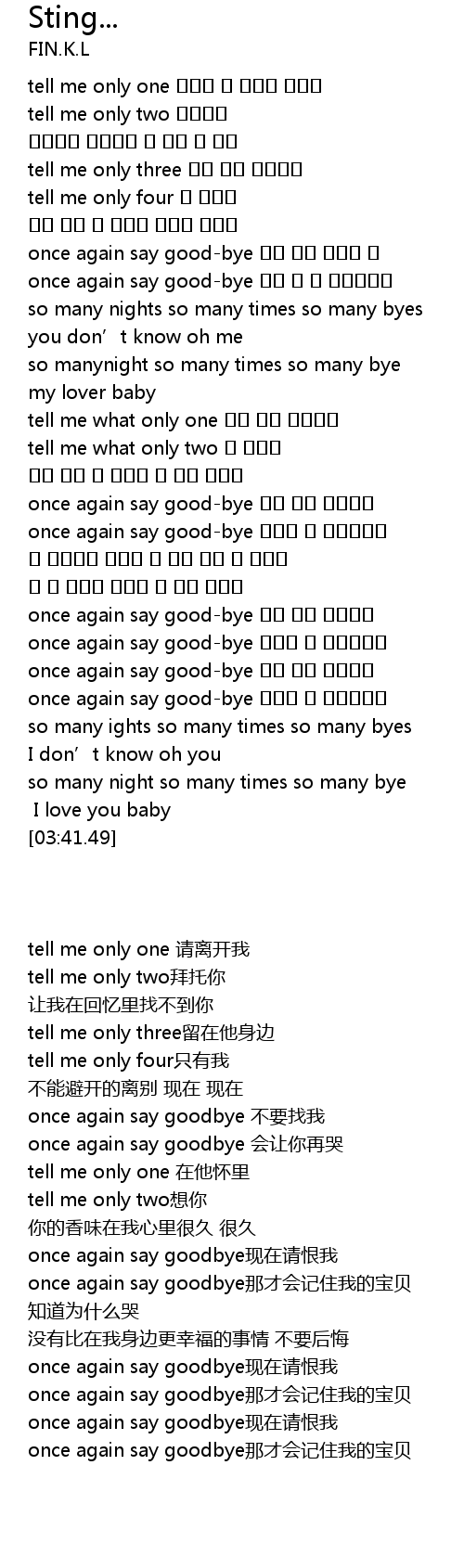 | [03:02.94] | once again say good-bye 이젠 나를 미워해줘 |