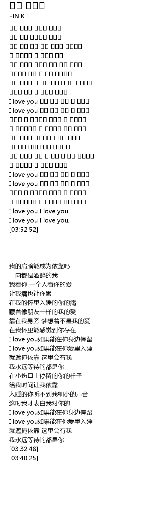 [03:06.10] I love you 너의 사랑 잠들 수 있다면
