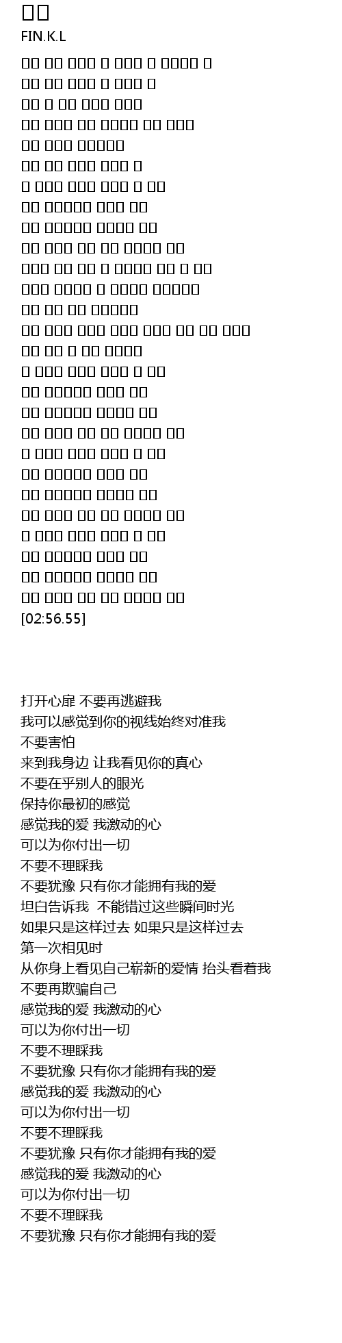 | [02:36.35] | 내 사랑을 느껴봐 설레는 내 맘도 |