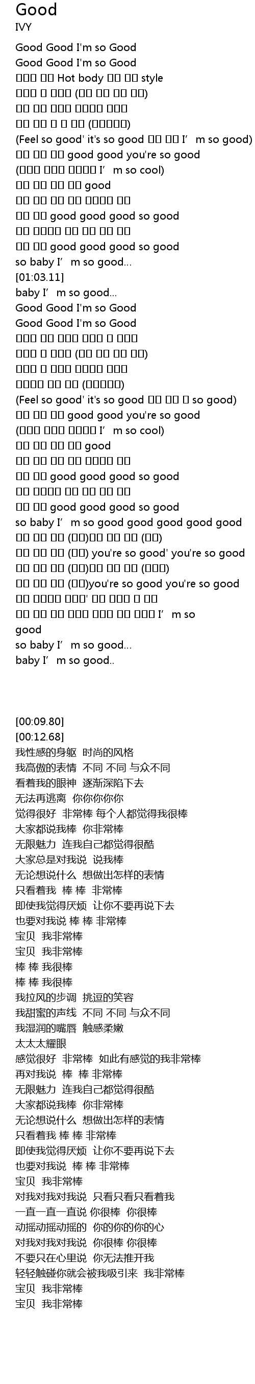 | [00:09.80] | Good Good I' m so Good |
