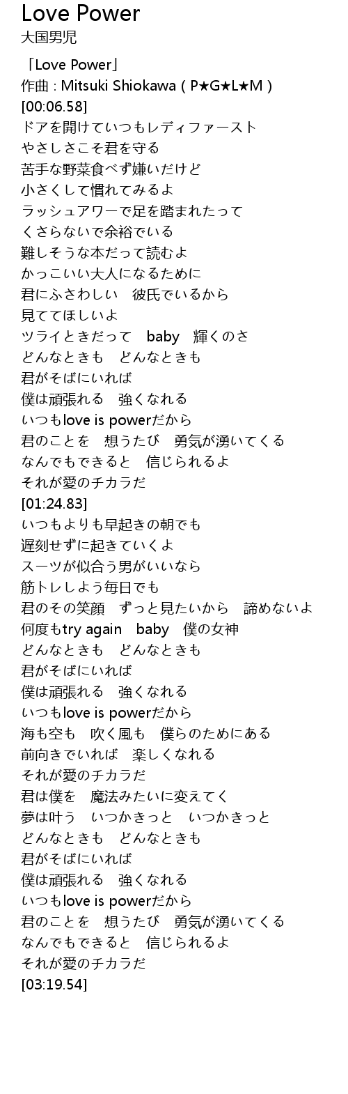 | [00:01.58] | Love Power |