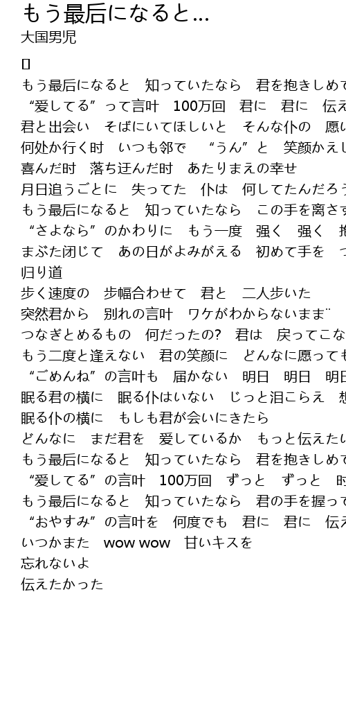 | もう最后になると 知っていたなら 君を抱きしめてた | |