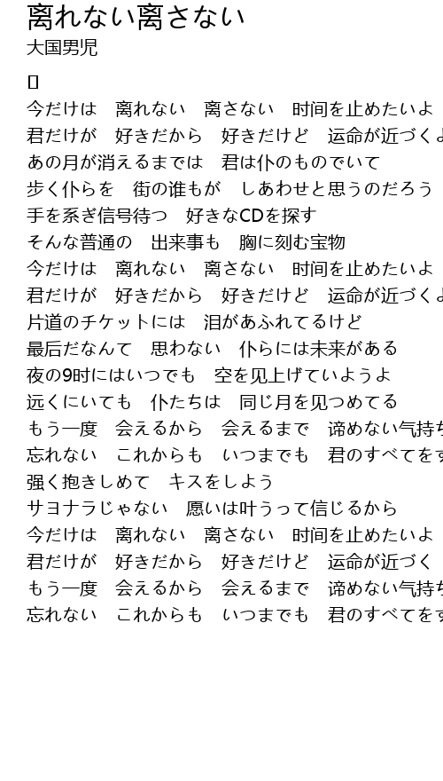 | 今だけは 离れない 离さない 时间を止めたいよ | |