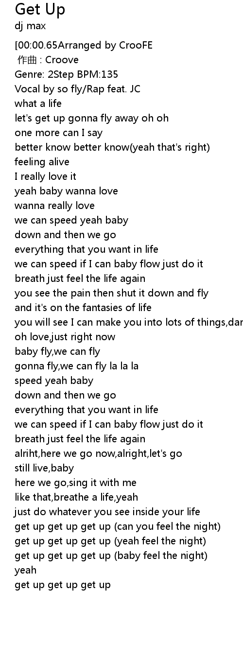 | [02:01.55] | get up get up get up (baby feel the night) |