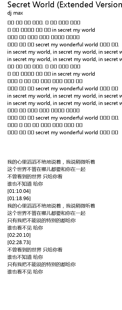 | [01:18.96] | in secret my world, in secret my world, in secret wonderful world |