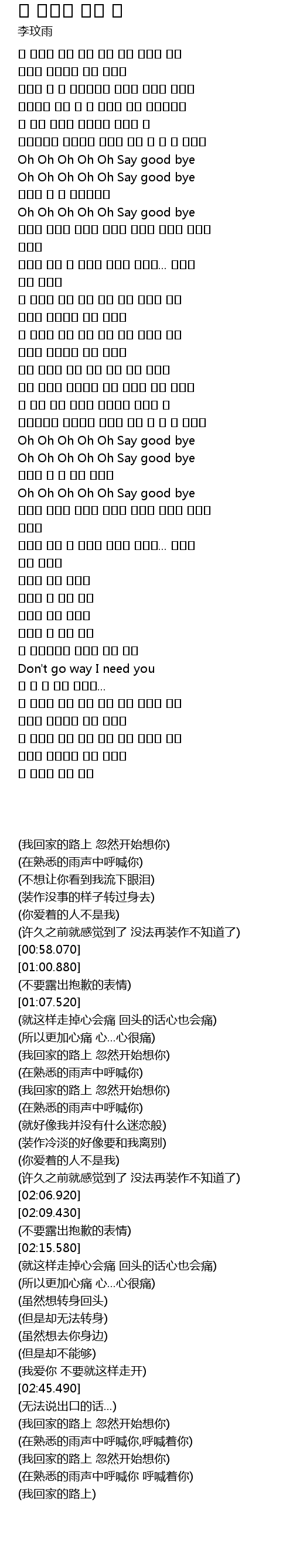 | [02:15.580] | Oh Oh Oh Oh Oh Say good bye |