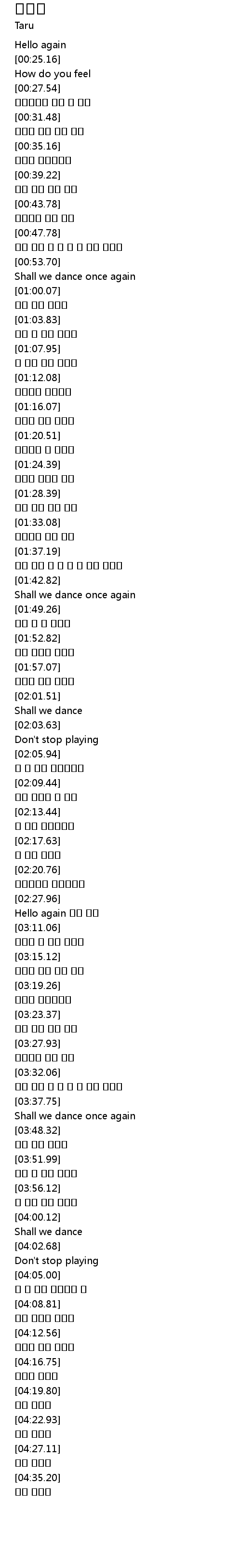 | [03:08.44] | Hello again 다시 안녕 |