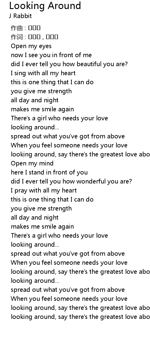 | [01:02.108] | looking around, say there's the greatest love above |