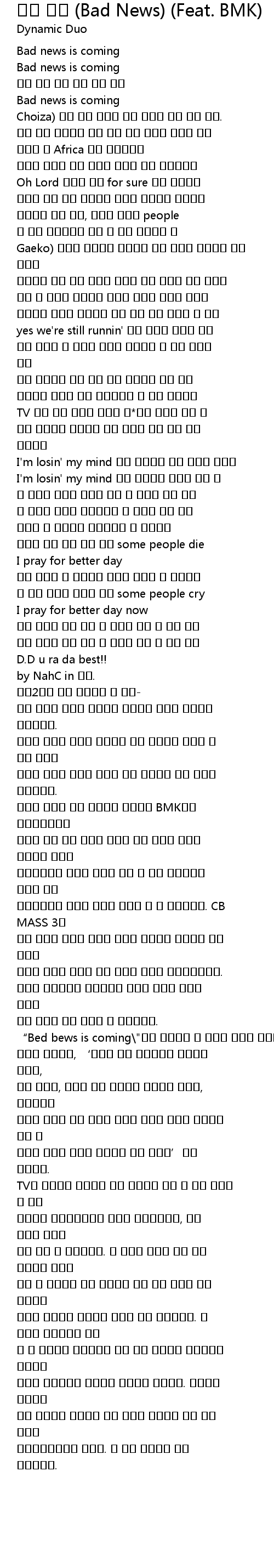 “Bed bews is coming\"으로 시작하는 이 곡에서 저희가 전하고 |