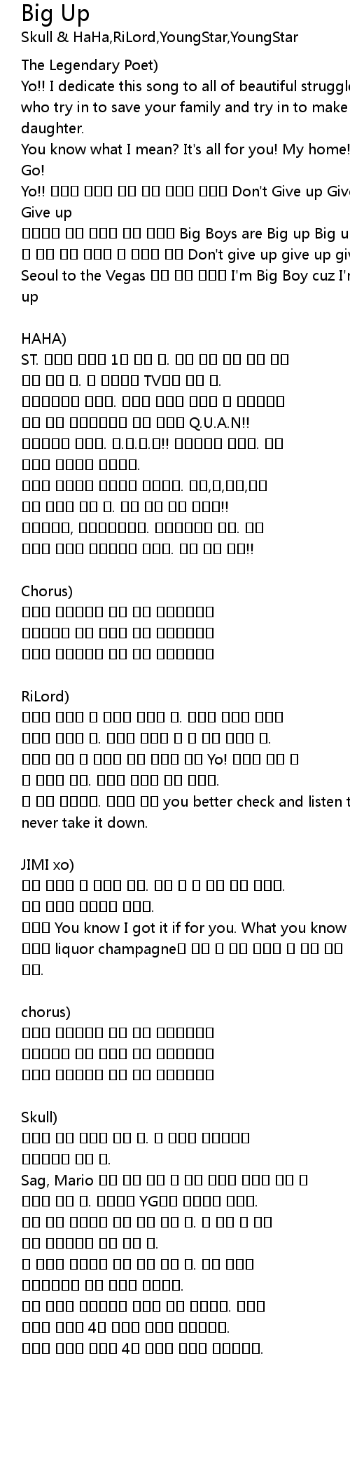 Seoul to the Vegas 내가 대장 먹었어 I'm Big Boy cuz I'm Big up Big up Big up |