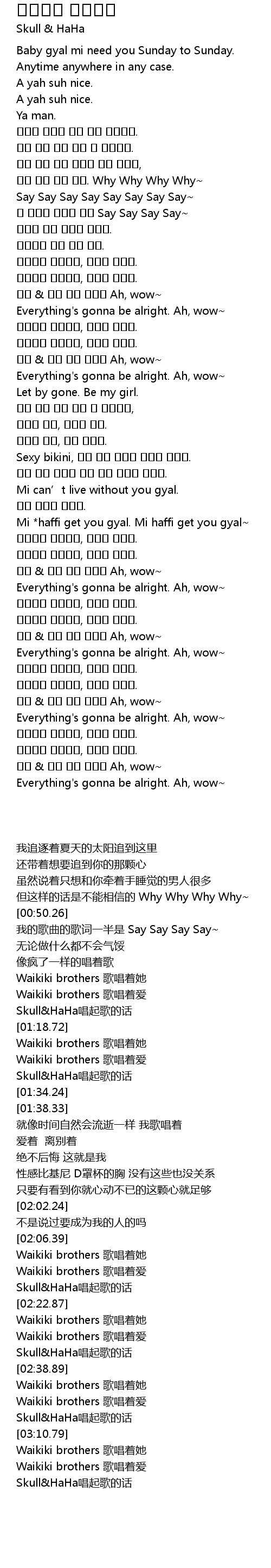 | [00:19.27] | Baby gyal mi need you Sunday to Sunday. |