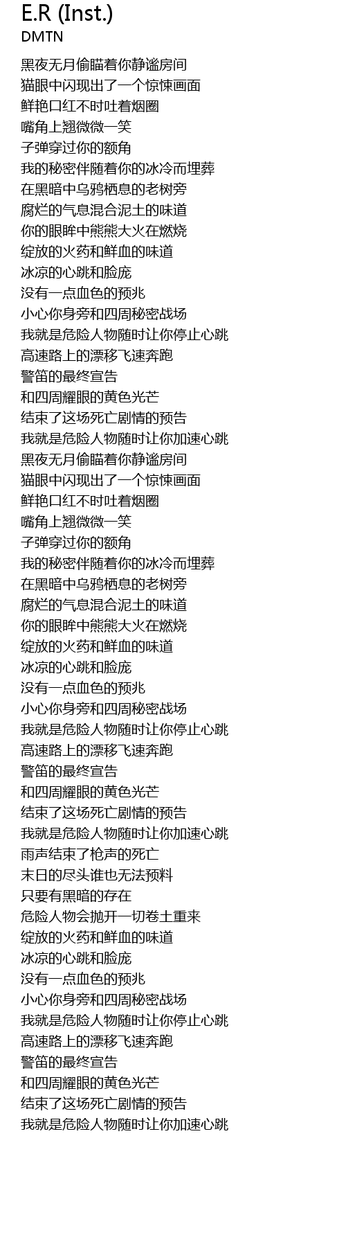 | [00:57.991] | 我就是危险人物随时让你停止心跳 |