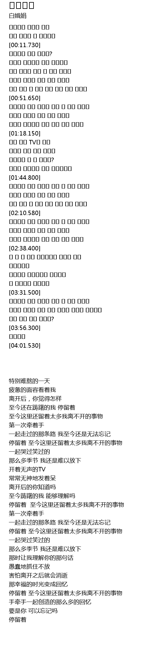 | [03:33.140] | 머물러요 아직 여기엔 떠날 수 없는 것들이 |
