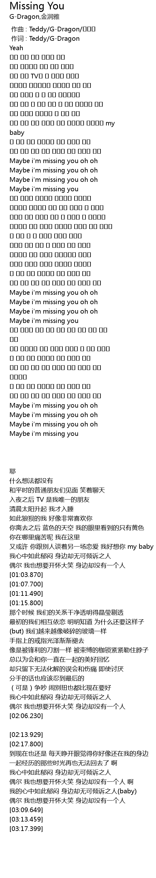 | [00:01.00] | 作词 : Teddy/G-Dragon |