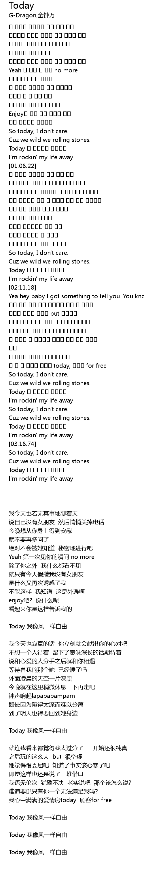 | [03:03.37] | So today, I don' t care. |