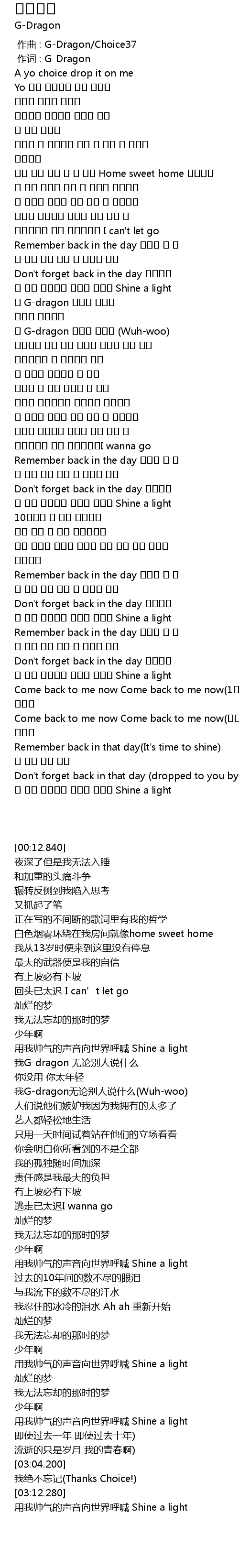 | [00:00.00] | zuo qu : GDragon Choice37 |