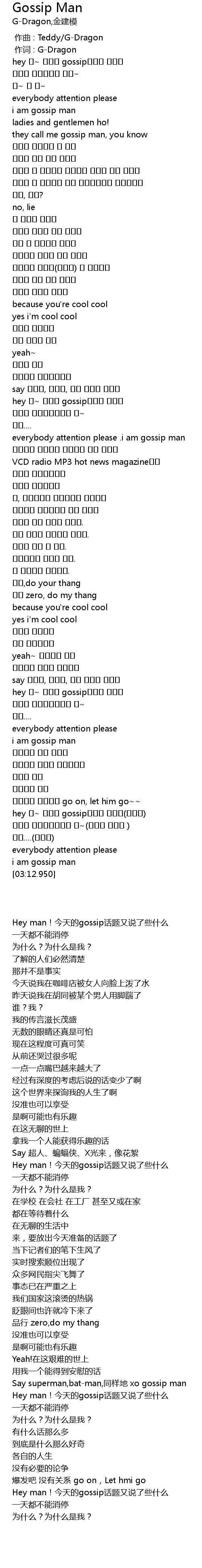 | [00:01.00] | 作词 : G-Dragon |