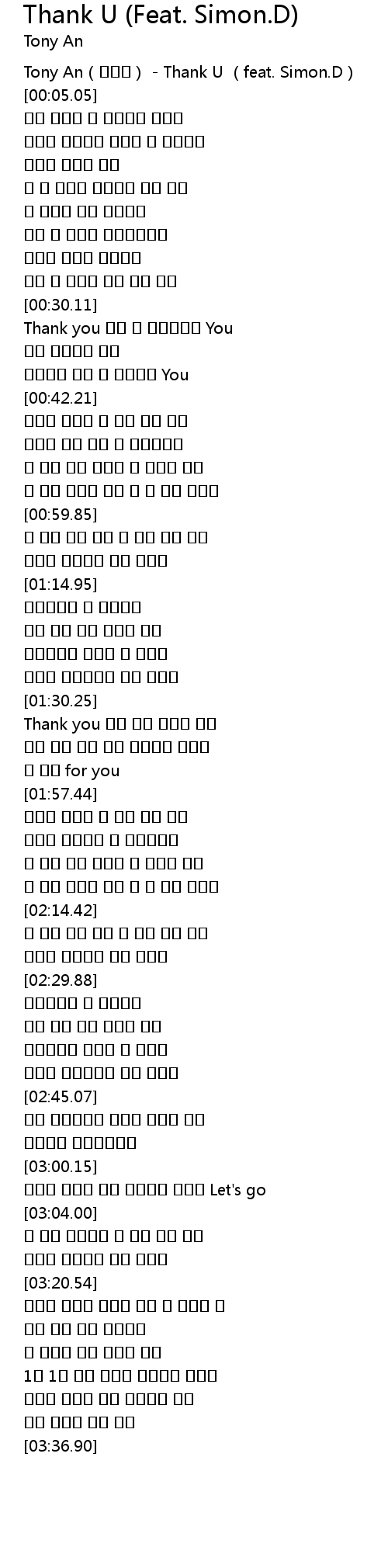 | [00:00.98] | Tony An(토니안) - Thank U (feat. Simon.D) |