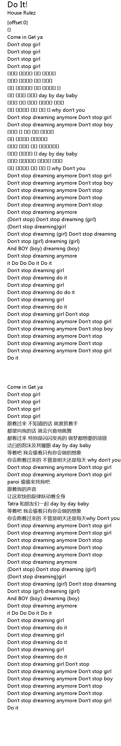 | [03:51.274] | Don' t stop dreaming anymore Don' t stop girl |