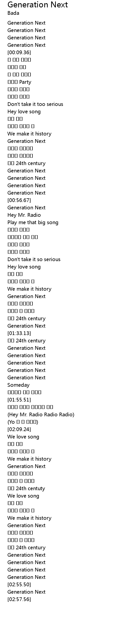 | [02:39.69] | Generation Next |