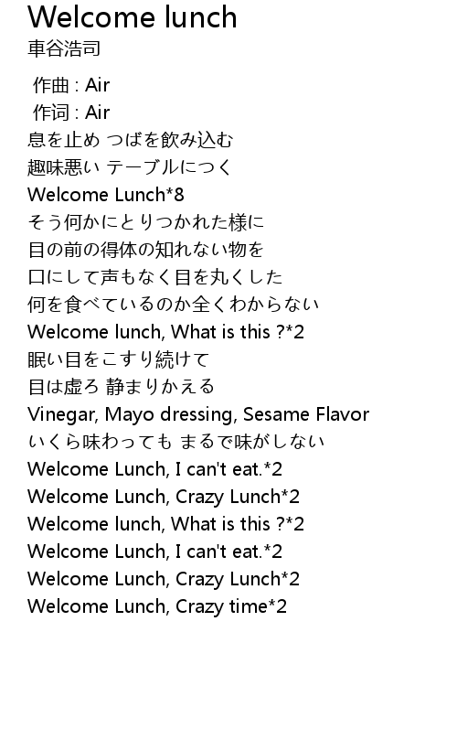 | [03:30.20] | Welcome Lunch, Crazy Lunch*2 |