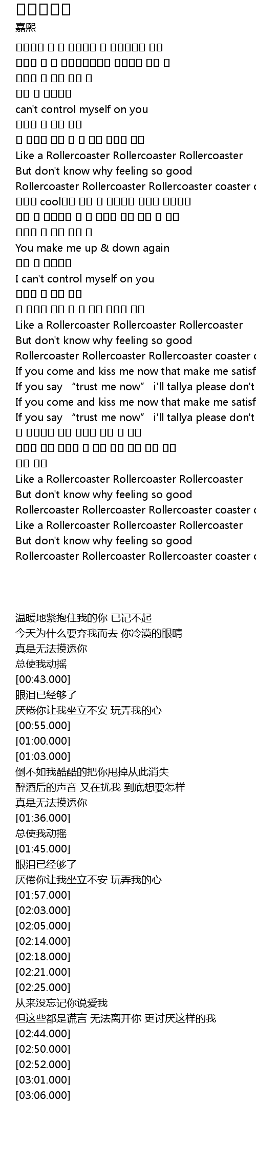 | [03:01.000] | Like a Rollercoaster Rollercoaster Rollercoaster |
