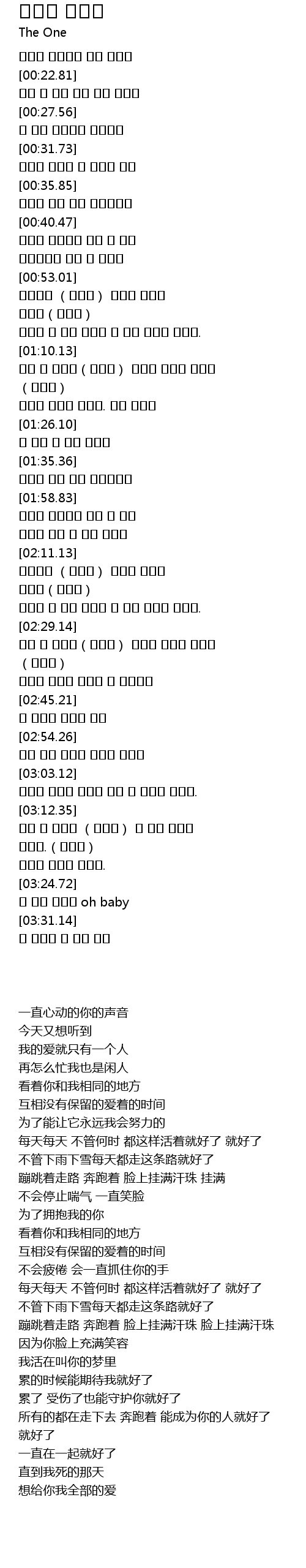 | [03:13.84] | 모든 걸 걸어서 (달려서) 네 사람 된다면 좋겠다.(좋겠다) |