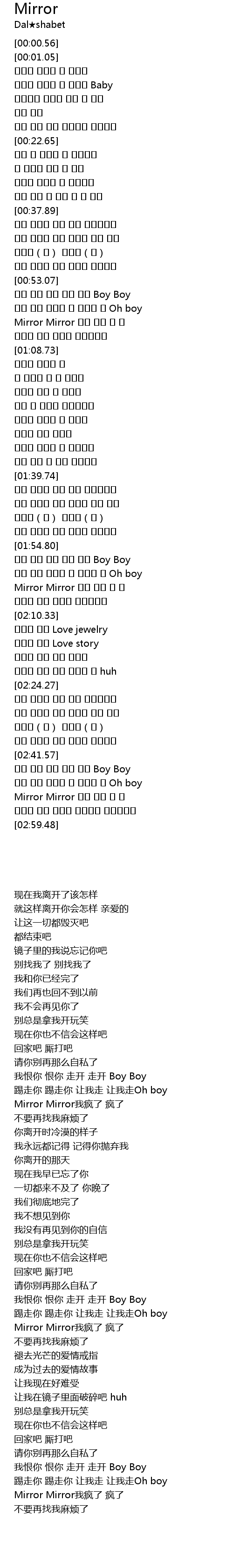 Mirror Mirror 미쳐 미쳐 나 나 |