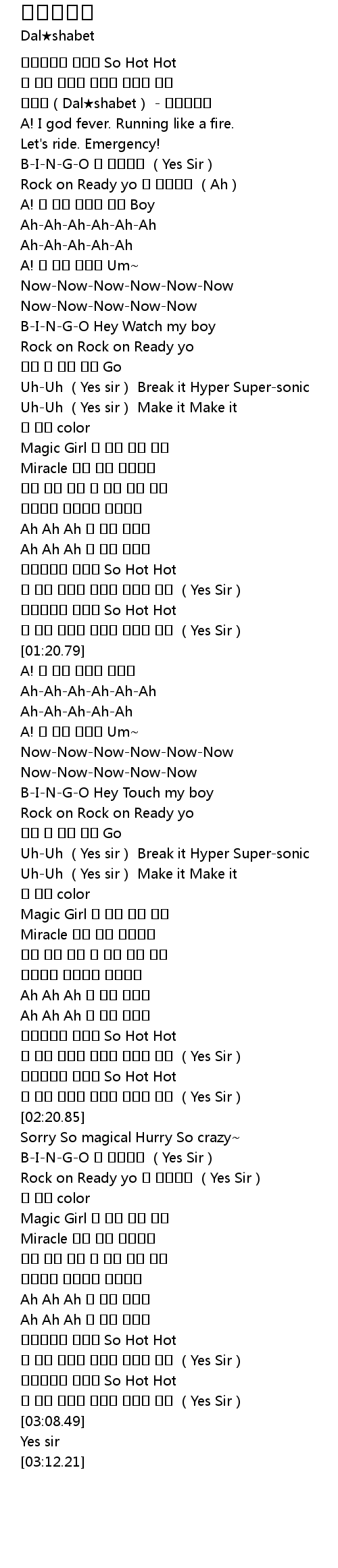 | [03:01.26] | 매력덩어리 덩어리 So Hot Hot |