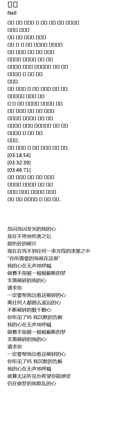 | [01:19.13] | 산산조각 난 나의 마음 |