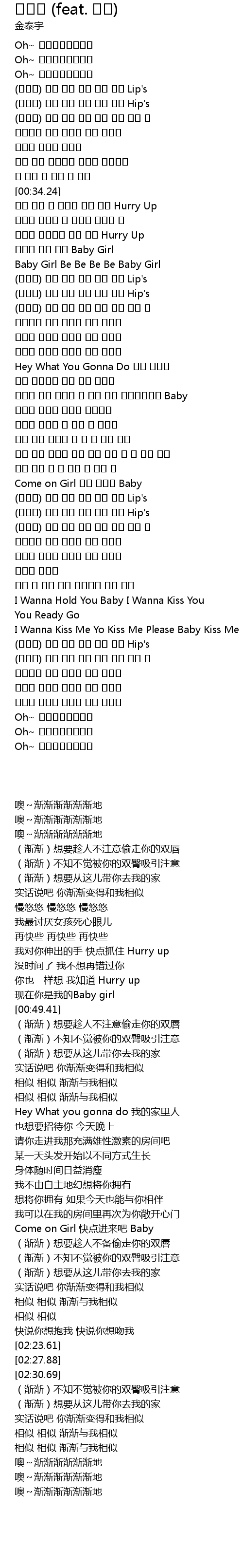 | [01:45.64] | Come on Girl 빨리 들어와 Baby |