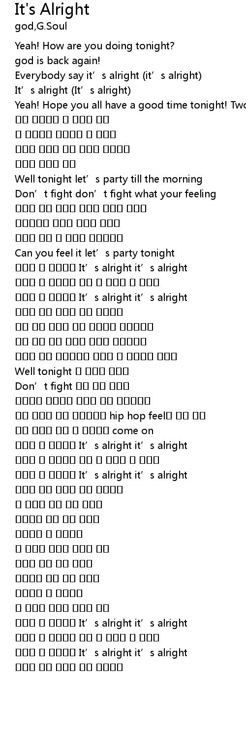 | [00:10.10] | Everybody say it’s alright (it’s alright) |