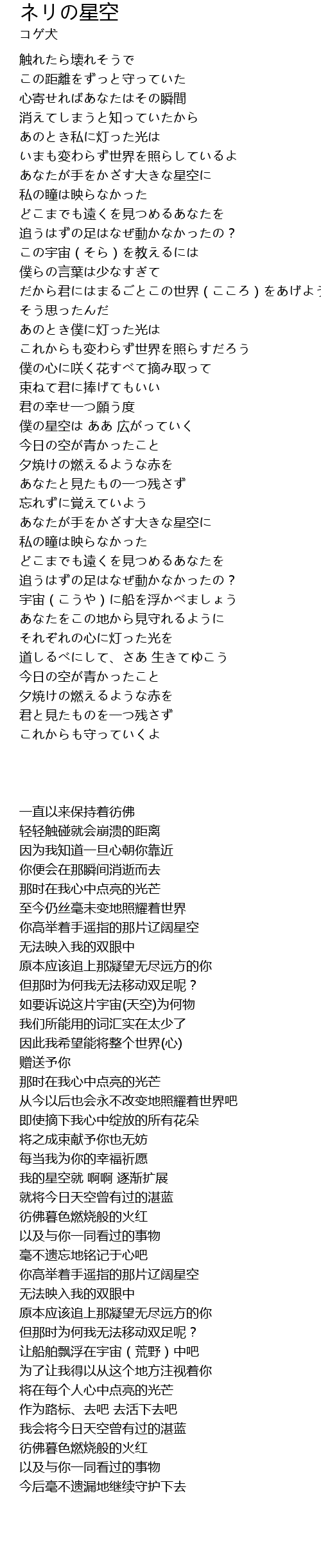 | [02:32.200] | 僕の星空は ああ 広がっていく |