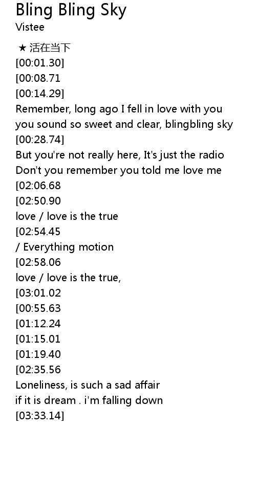 | [00:22.51] | you sound so sweet and clear, blingbling sky |