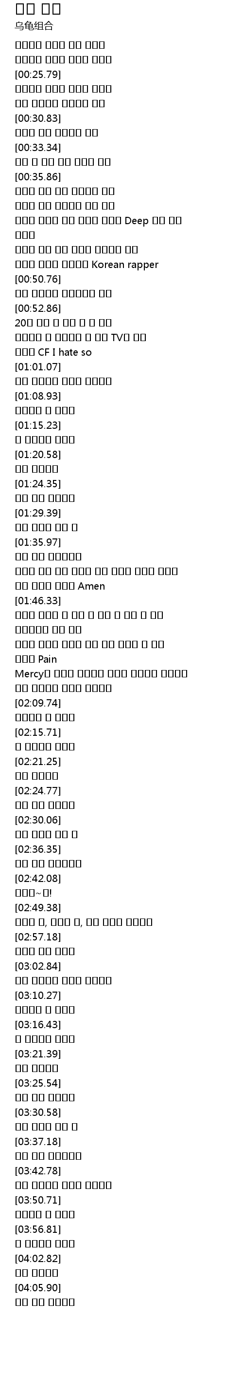 | [01:41.21] | 아픔을 겪은 후에 후회한 후에 무너진 마음에 가지고 있는 라임에 모두다 Amen |