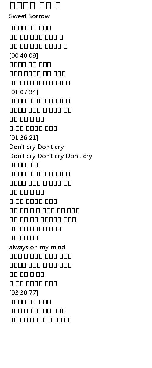 | [03:48.90] | 잊지 마요 내가 늘 곁에 있음을 |