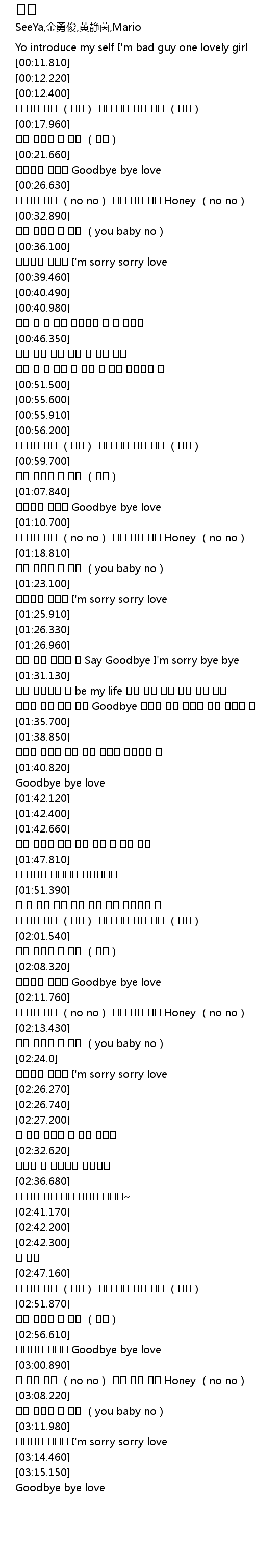| [03:13.100] | 마지막을 인사해 I'm sorry sorry love |
