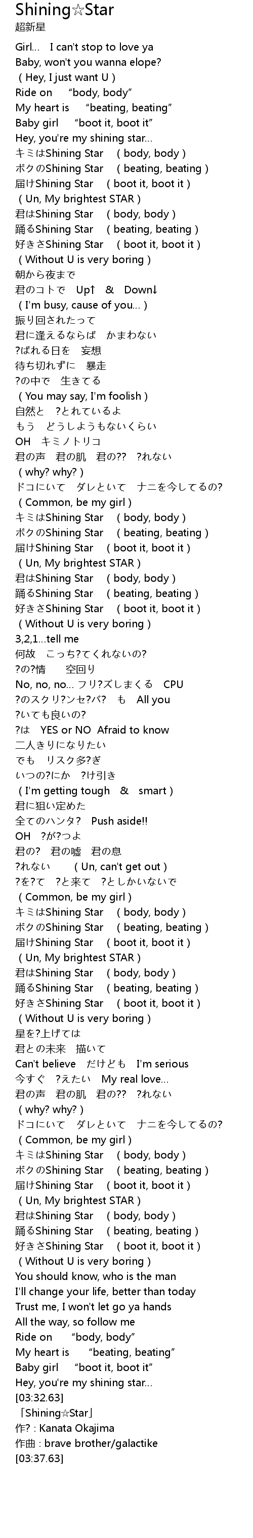 | [03:11.33] | 踊るShining Star (beating, beating) |