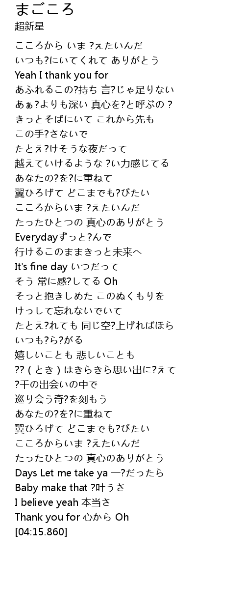 | [03:57.560] | たったひとつの 真心のありがとう |