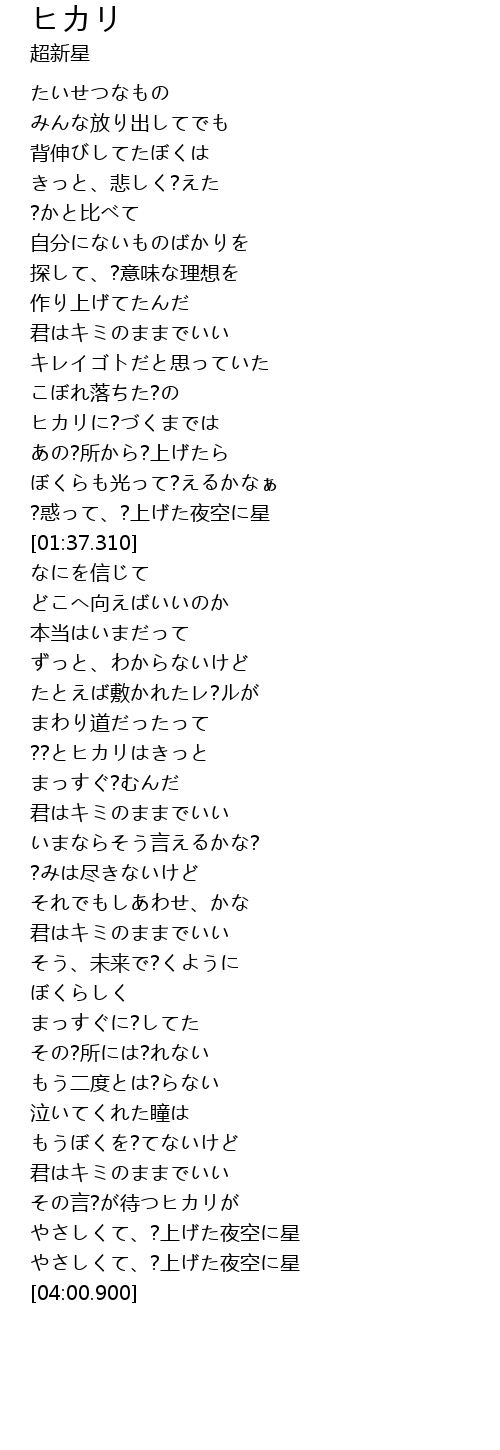 | [03:52.240] | やさしくて、?上げた夜空に星 |