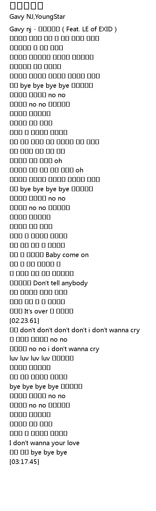 | [02:48.14] | bye bye bye bye 연락하지마 |