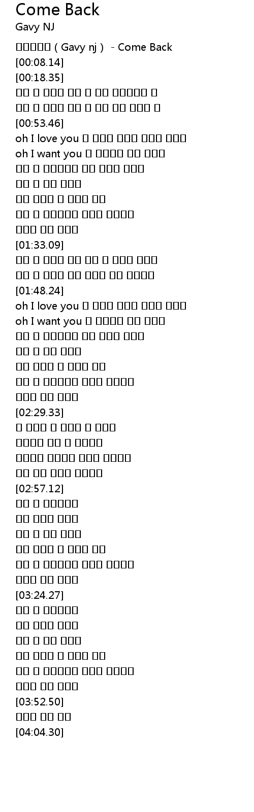 | [00:00.69] | 가비엔제이(Gavy nj) - Come Back |