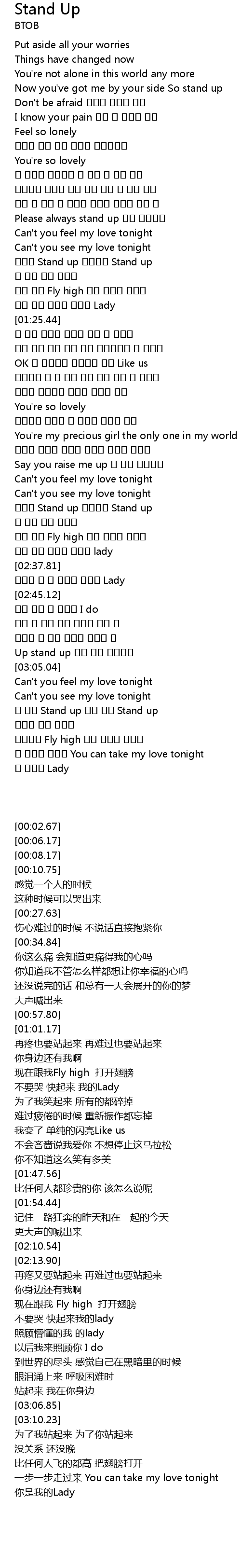 | [02:58.68] | Up stand up 내가 곁에 있어줄게 |