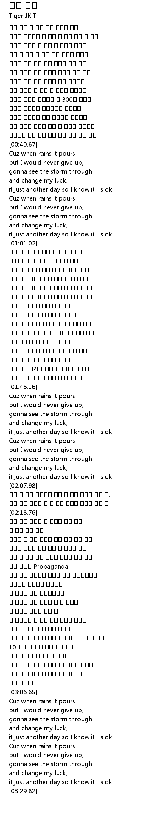 | [03:18.67] | Cuz when rains it pours |