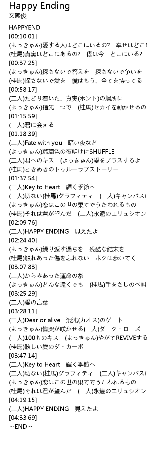 | [04:26.33] | (二人)HAPPY ENDING 見えたよ |