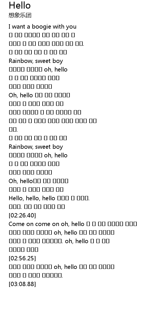 | [02:14.63] | Hello, hello, hello 포근한 널 사랑해. |